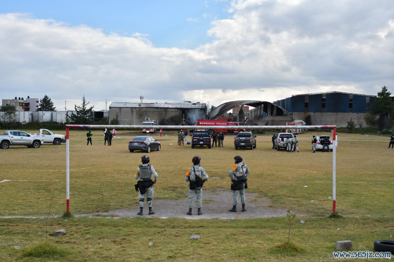 12月15日,在墨西哥中部墨西哥州托卢卡市,国民警卫队东谈主员在事故现场警戒。