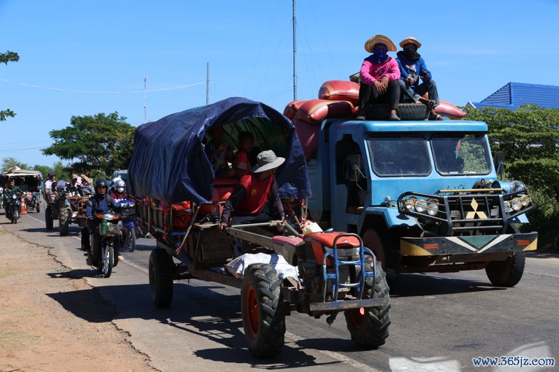 12月15日,在柬埔寨暹粒省,东谈主们为了侧目空袭除去家园。