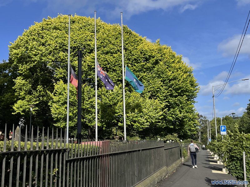 12月15日,在澳大利亚墨尔本,路边的旗杆降半旗,乱骂悉尼邦迪滩枪击事件受难者(手机像片)。