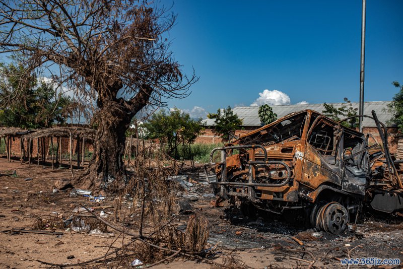 这是12月14日在刚果(金)东部南基伍省乌维拉隔邻拍摄的毁灭车辆。